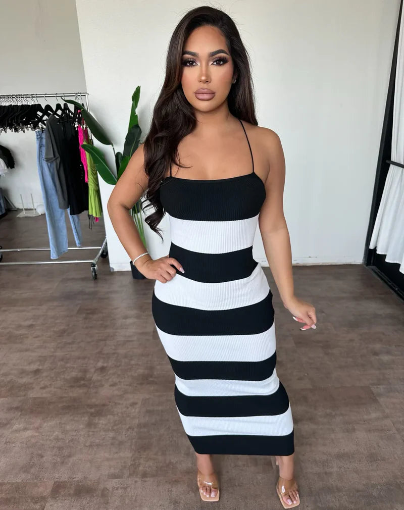 👗 Modieus en uniek: deze jurk heeft een gestreept ontwerp dat modieus en uniek is, waardoor je je onderscheidt van de massa.